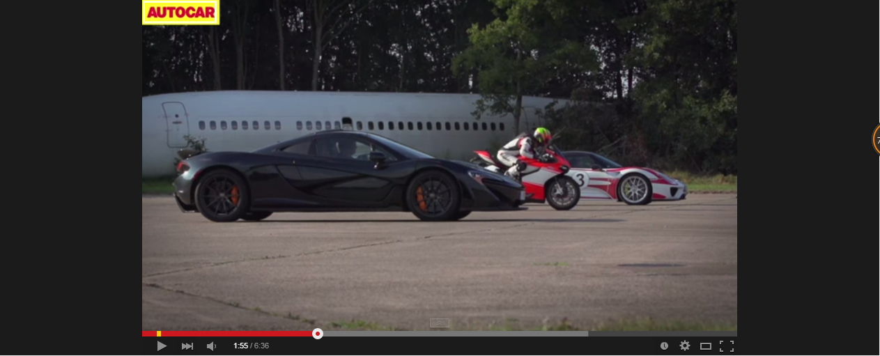 Di video tersebut,ealah ternyata drag race motor melawan mobil brosist hahaha :p. Autocar ternyata cukup edan dengan mengcompare motor dengan mobil yang dianggapnya bejaban untuk diadu. Meski cc dan jumlah pistonnya berbeda jauh,tetapi hasilnya mencengangkan brosist!! Mesin dengan konfigurasi L-Twin milik Ducati 1199 Superleggera tersebut ternyata bisa mengasapi supercar sekelas McLaren P1 dan Porsche 918 Spyder dengan mudah! Kok bisa ya??
