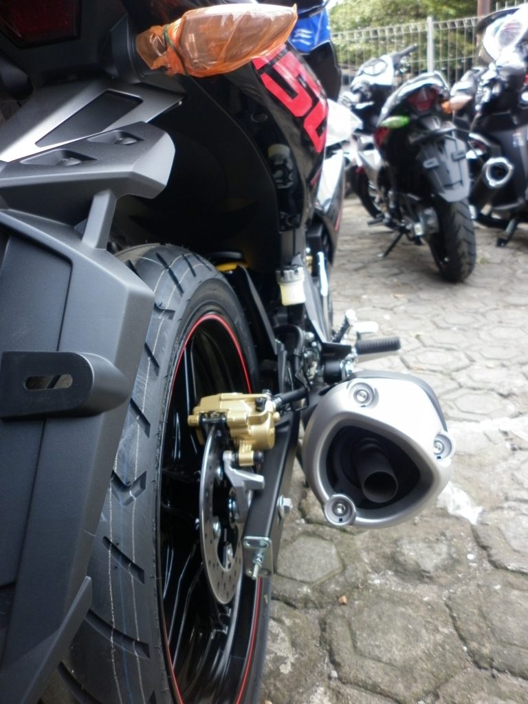 Pertama kali,saya jelas melihat sisi yang selama ini menjadi gossip hangat di jagad blogsphere. Ya,sisi ini tentu kaki-kakinya brosist! Melihat dari belakang,weh gambot tenan brosist! Ban 120/70 17 dikawinkan dengan velg berukuran 3,5 inch khas New Vixion dan R15 makin membuatnya terlihat gagah. Ditambah cakram Nissin,disinyalir pengereman bakal joss nih. Beralih ke depan,oalaah,kok Bebek banget ya?? Ban depan hanya berukuran 70/90 17 dan ukuran velg 1.85. Ga menampik kalau memang MX King ini masih berdesain bebek tulen. Tetapi,agak kurang klop jika melihat ban belakang yang gambot itu. Salah satu sisi minus yang lumayan menohok nih untuk MX King..