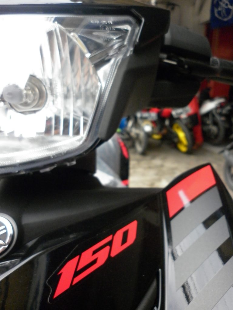 Langsung diajak sama mereka untuk liat unit yang baru aja turun dari truk itu. First Impression,nih motor ganteng juga ya dilihat dari dekat! Setelah liat dari gambar-gambar saja yang bisa aja frame kamera kurang akurat menerjemahkan bentuk aslinya,akhirnya saya benar-benar percaya kalau motor ini Gambot Look! Dimensinya sedikit lebih besar dari Jupiter MX 135,dan jelas lebih besar dari si Evita :D.