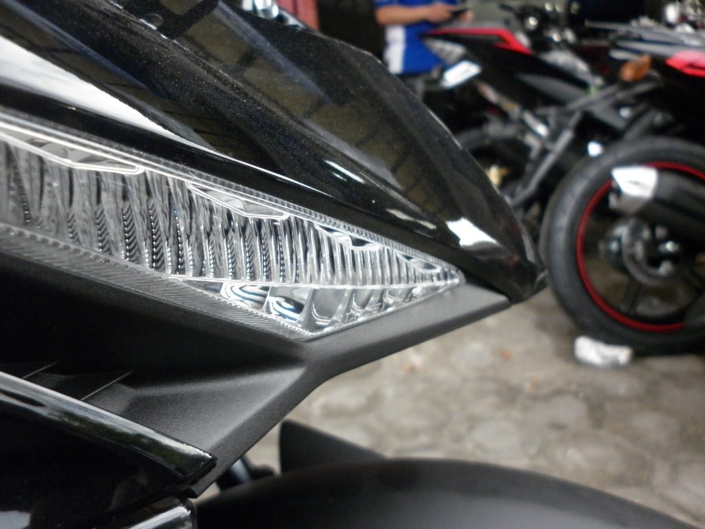 Beralih ke body. Siapa yang menampik kalau build quality Yamaha itu bagus brosist? Ya,saya jadi saksinya barusan :D. Sambungan antar part sangat rapih terlihat. Dari depan hingga belakang,klop dan serasi! Mulai dari lampu sein,lampu senja yang sudah LED,fairing,body,hingga buritan terpasang dengan sempurna. Dipadukan dengan warna hitam dan merah,versi warna hitam ini cukup garang brosist..