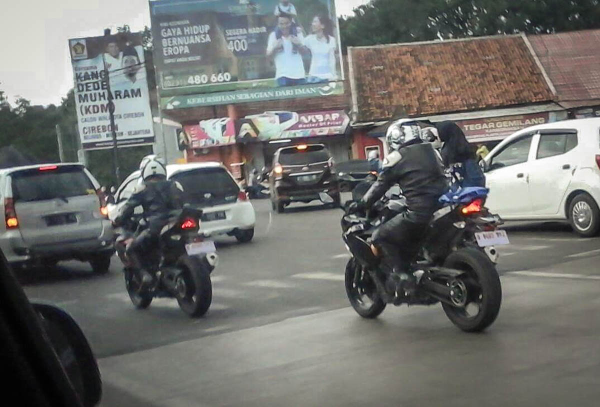 Nah, kebetulan lek IWB dapet lagi nih bro spyshot tentang Kawasaki All New Ninja 250 2018 ini dari seorang pembacanya. Dikirim via email, terlihat ada beberapa ekor Ninja 250 terbaru 2018 yang sedang ditest di jalanan oleh para Test Rider Kawasaki, dengan full protektor dan seperti biasa, selalu tertutup banget hehe.. Dikirim oleh bro Muhammad Alqaf, tidak dijelaskan dimana posisi pengambilan gambar motor tersebut. Namun bisa dipastikan lewat umbul-umbul dan spanduk di sekitar gambar, pengambilan gambar ini ada di Cirebon masbro! Wuih, jauh juga yak mainnya nih test rider..