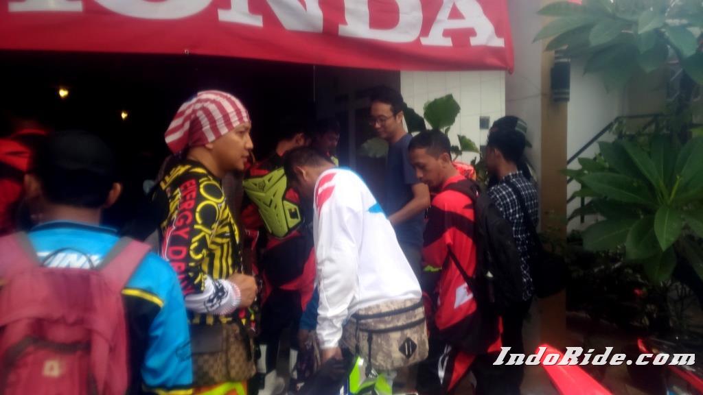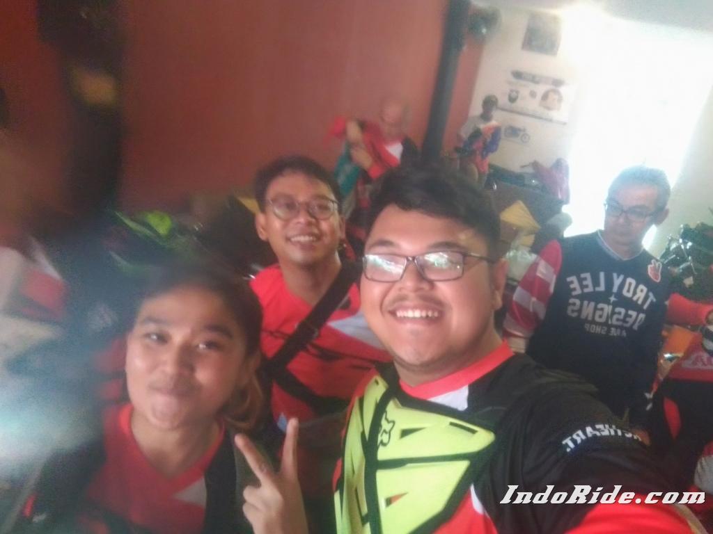 Dimulai hari Sabtu pagi,kami semua berkumpul di Edwin’s Kupi, Sentul. Kebetulan saya langsung kesana karena nantinya si Edward bakal di towing untuk langsung diantar ke resort sama team towing Wahana Honda, Mantap! Saat sampai sana gerimis mengundang, ternyata udah rame banget temen-temen off roader dan juga media beserta temen-temen blogger vlogger yang terdiri dari Saya pribadi, apipotoblog, vlogger ada Sumarlin dan Fathi. Terus yang bikin kaget, ternyata ada juga om Fathir Muchtar alias artis yang biasa saya lihat aksinya di TV! WOWW! Saya pun lantas minta foto.. Haha..