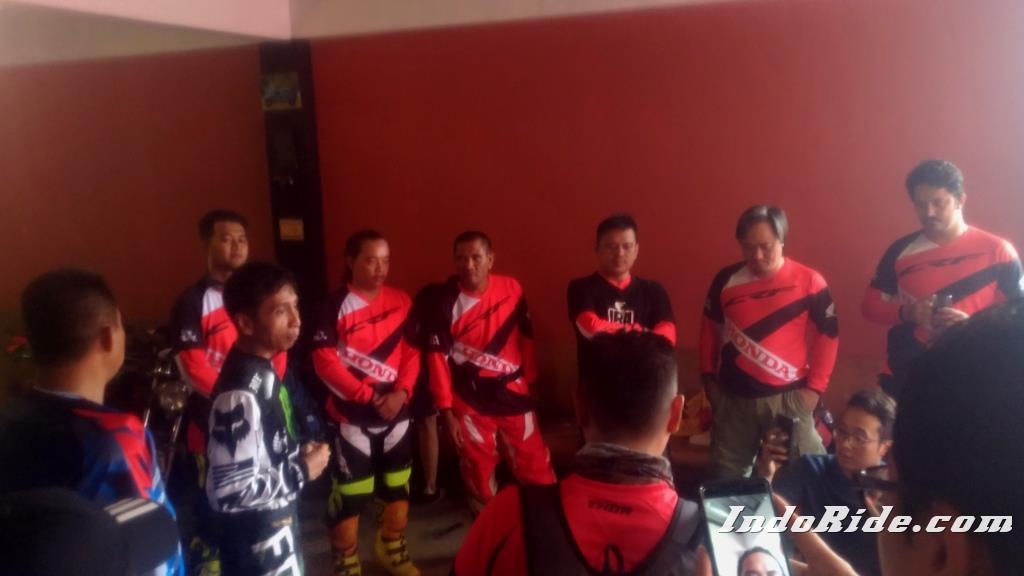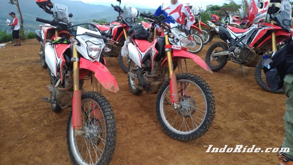 Singkat cerita, rombongan kami ini dikepalai oleh beberapa leader. Dan leader utamanya adalah om Gareng, yang memang udah expert banget di bidang ini. Bro bisa lihat aktivitasnya di ig @gareng .. Lalu kami dibagi jadi beberapa grup, saya masuk grup 2 sebagai orang yang belum pernah offroad sama sekali, bareng sama apip dan kak adinda. Nurut aja lah :D. Setelah siap semua, briefing dipimpin oleh om Gareng dan om Jack yang memberitahu kami tentang dasar-dasar yang perlu diperhatikan saat sedang offroad. Kuncinya adalah jangan panik, dan dibawa fun saja. Lalu om Gareng juga menjelaskan beberapa trik saat melewati obstacle. Seperti saat melewati tanjakan, turunan, jalan bebatuan, dsb, yang nanti akan saya ulas di lain artikel.. Next, pilih motor, dan gasss! Saya pun pilih Honda CRF150L karena penasaran dengan performanya…