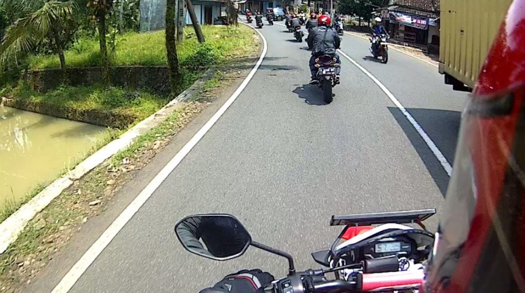 Satu jam pertama naik Honda CRF150L 2017, yang saya rasakan gak ada capeknya! Posisi duduk tegak, akselerasi berasa mantap. Walau memakai ban garuk tanah plus velg diameter lebar gak lantas membuat CRF150L powernya kedodoran. Buat diajak akselerasi, bahkan overtake kendaraan lain pun masih mumpuni! Karakter mesin SOHC 150cc, 2 valve, non radiator PGM-FI memang sangat bisa diandalkan untuk kegiatan seperti ini. Lubang? Hajarrr.. Alhamdulillah saya lebih memilih menghindari lubang supaya tetap #Cari_Aman! Hehe.. Eitss, teaser dulu, Review Honda CRF150L Touring nya nanti aja yaak, jangan dimarih, bisa ribuan character entar!