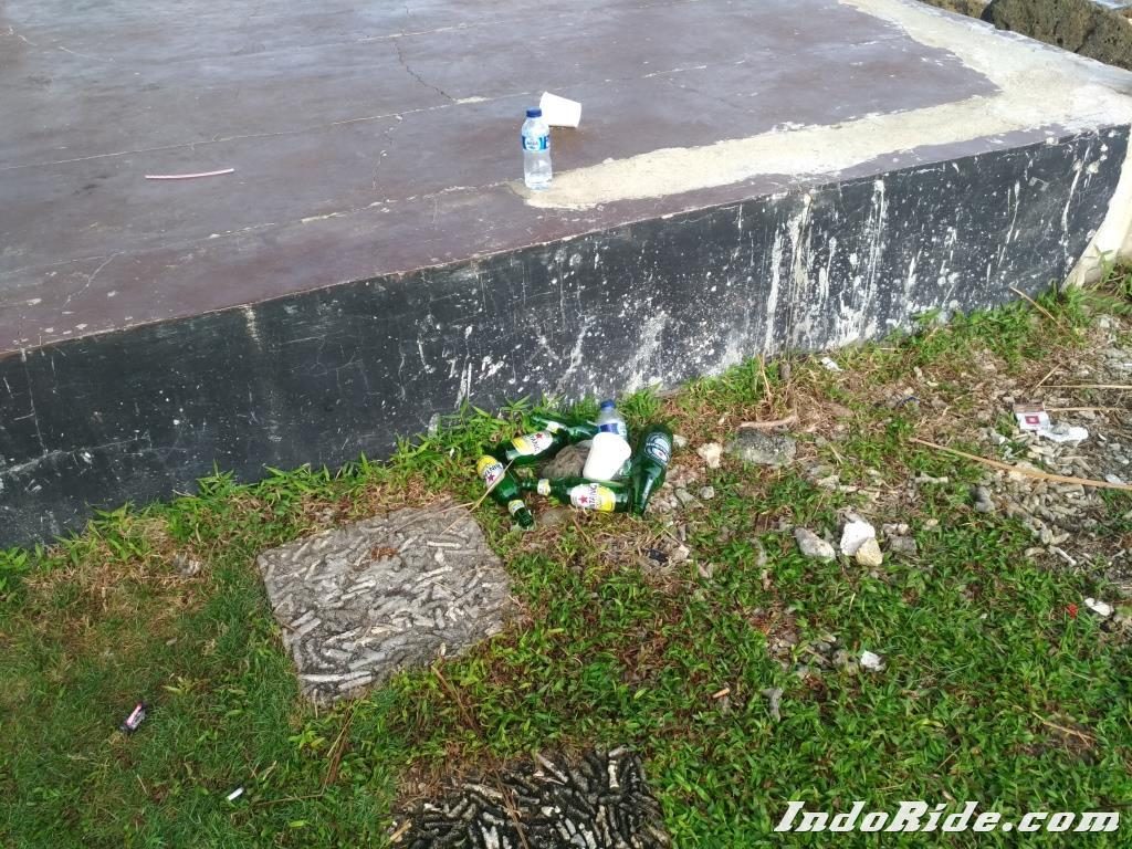 Sayangnya, saya sangat kecewa sama orang-orang yang gak tanggung jawab, buang sampah sembarangan di pinggir pantai. Mulai dari sampah bekas plastik makanan, minuman, bungkus rokok, hingga botol Bir berjejer di pinggir pantai! Sungguh memalukan perilaku manusia yang sudah memiliki akal, namun sulit sekali membuang sampah di tempat yang seharusnya..
