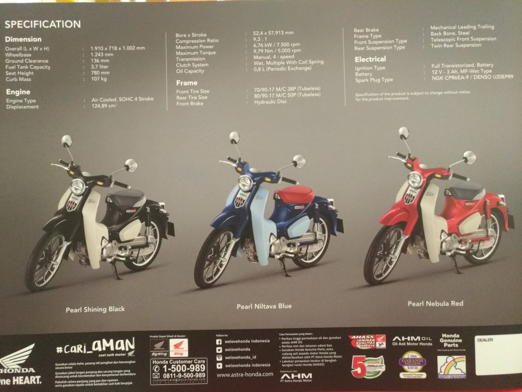 Fitur dari Honda Super Cub C125 ini antara lain Smart Key System, Full LED Lamp, Digital Speedometer, dll.. Keren banget lah untuk motor retro yang berusaha tampil modern dengan sedikit penyempurnaan fitur. Untuk selengkapnya brosist bisa baca dulu artikelnya disini…
