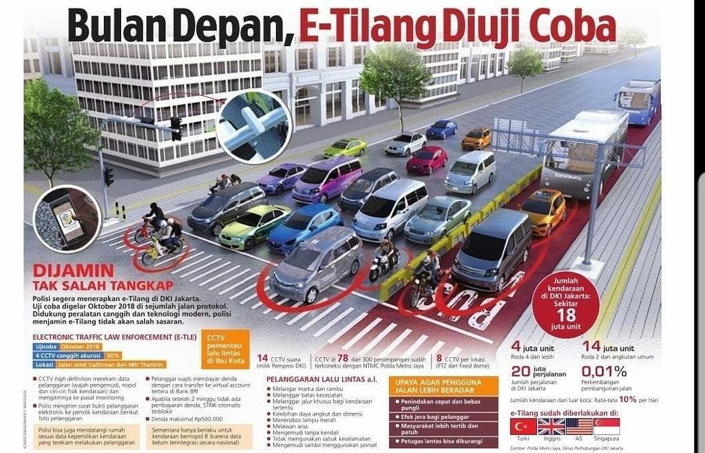 Untuk merealisasikan wacananya ini, Polda Metro Jaya mengatakan telah menyediakan 4 CCTV yang akan digunakan dalam uji coba e-Tilang di Jl Jenderal Sudirman-MH Thamrin. Tilang elektronik akan diuji coba pada Oktober 2018 mendatang.