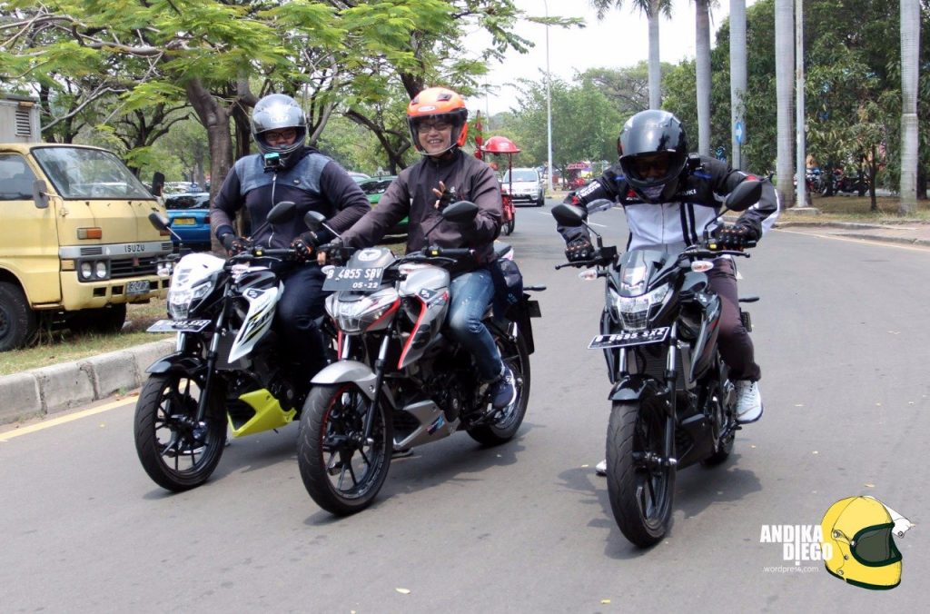 Sebelumnya mau mengucapkan terimakasih kepada rekan-rekan dari Suzuki yang udah kasih kesempatan saya dan mang Kobayogas untuk ngetest lebih awal, karena habis shalat Jumat kami sudah harus berangkat ke Airport (suwun poll mba Yemima dan pak Banggas)! so, Saya dan mang Kobay berkesempatan untuk riding bareng dan ambil sedikit footage video di tengah riding kami. Kami juga dibantu oleh om Andika Diego di blognya andikadiego.wordpress.com yang udah bantuin kita untuk ambil foto! Mantaappp! Saatnya gasss Suzuki Bandit 150!