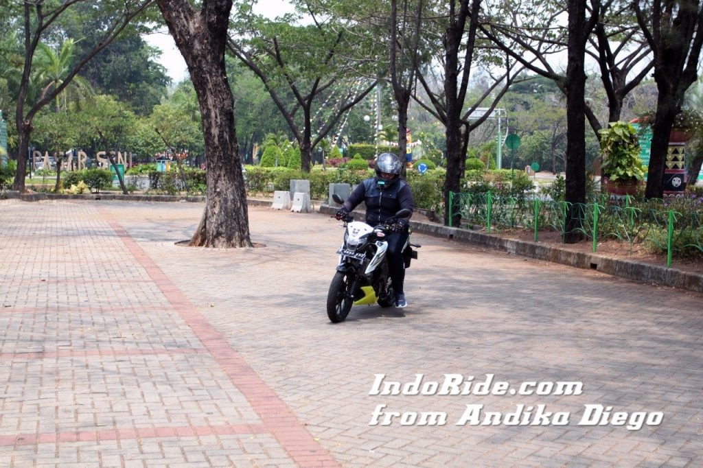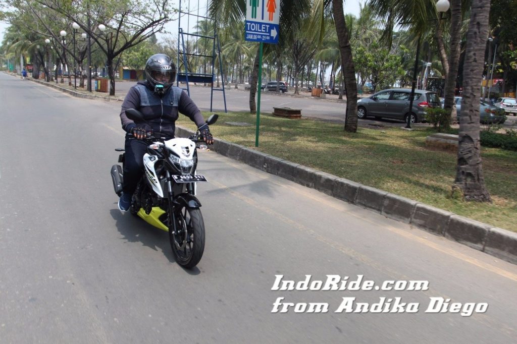 Soal handling, yang saya rasakan gak ada perubahan sama sekali dengan GSX-R150 dan GSX-S150 yang lebih sporty. Walau ada perubahan bentuk rangka plus penambahan berat (136kg), namun bicara handling gak ada yang berubah dibanding dua pendahulunya. Di Ancol sendiri banyak tikungan yang cukup menantang untuk ngetes handling GSX150 Bandit. Mulai dari tikungan tajam, parabolic maupun tikungan putar semuanya menjadi hal yang mudah bersama GSX150 Bandit!