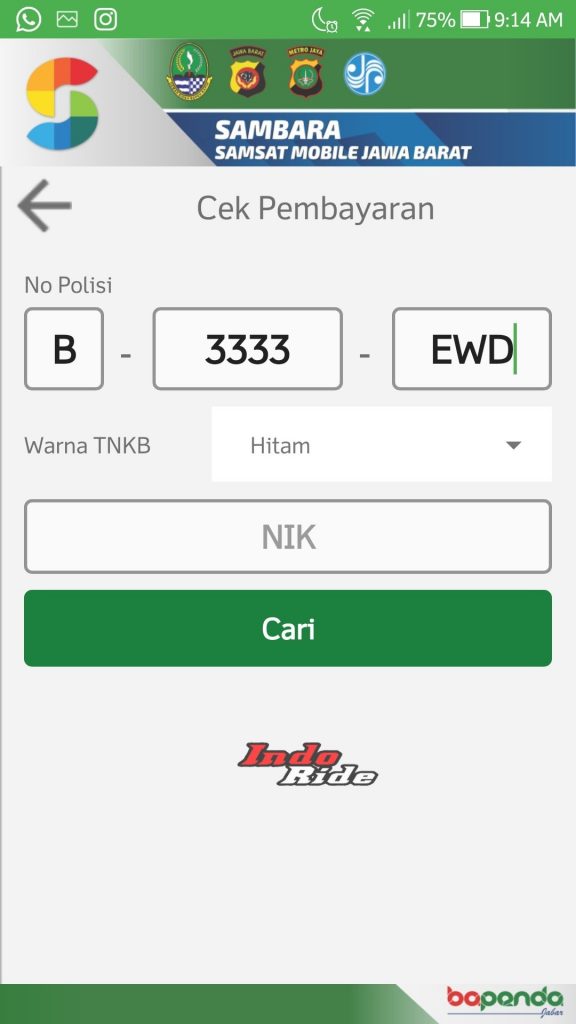 Pertama, brosist bisa langsung Download aplikasi SAMBARA, atau Samsat Mobile Jawa Barat. Di aplikasi tersebut terdapat informasi lengkap mengenai segala kebutuhan brosist tentang kepemilikan kendaraan di Jawa Barat, bisa di download di Play Store atau AppStore nih.. Setelah Download, langsung cek menu Pembayaran-Bukti Bayar, lalu klik tanda (+), didalamnya tinggal masukkan sesuai instruksi. Ada Nomor Polisi, Warna TNKB, serta NIK sesuai KTP kepemilikan kendaraan tersebut. Setelah memasukkan semuanya, tinggal tunggu sampai informasi mengenai KODE BAYAR tersedia di aplikasi Sambara tersebut.