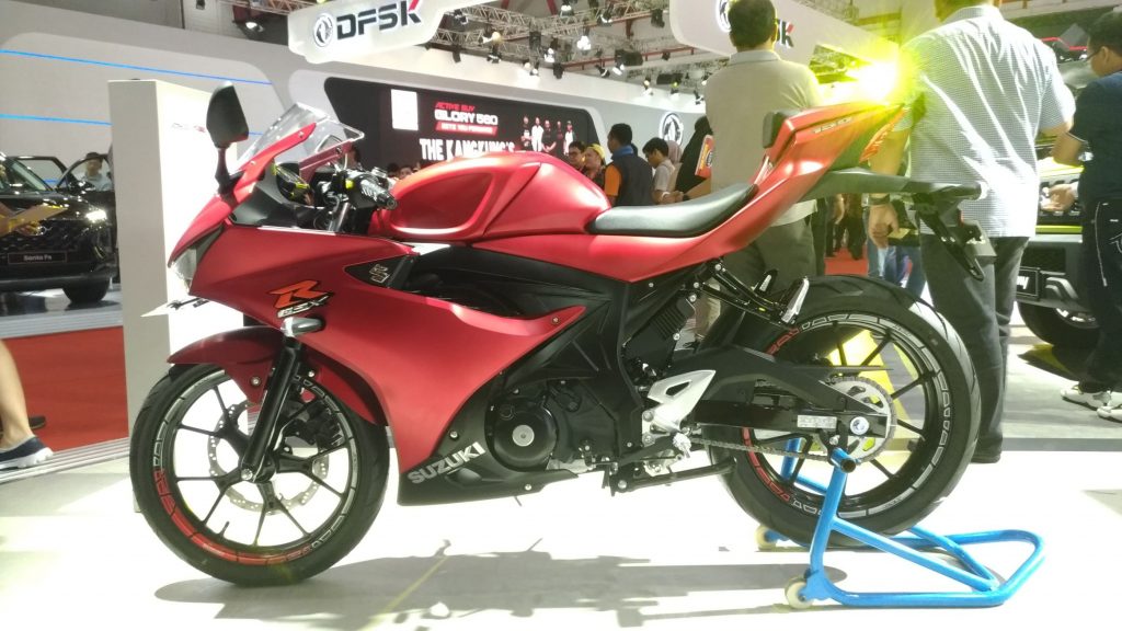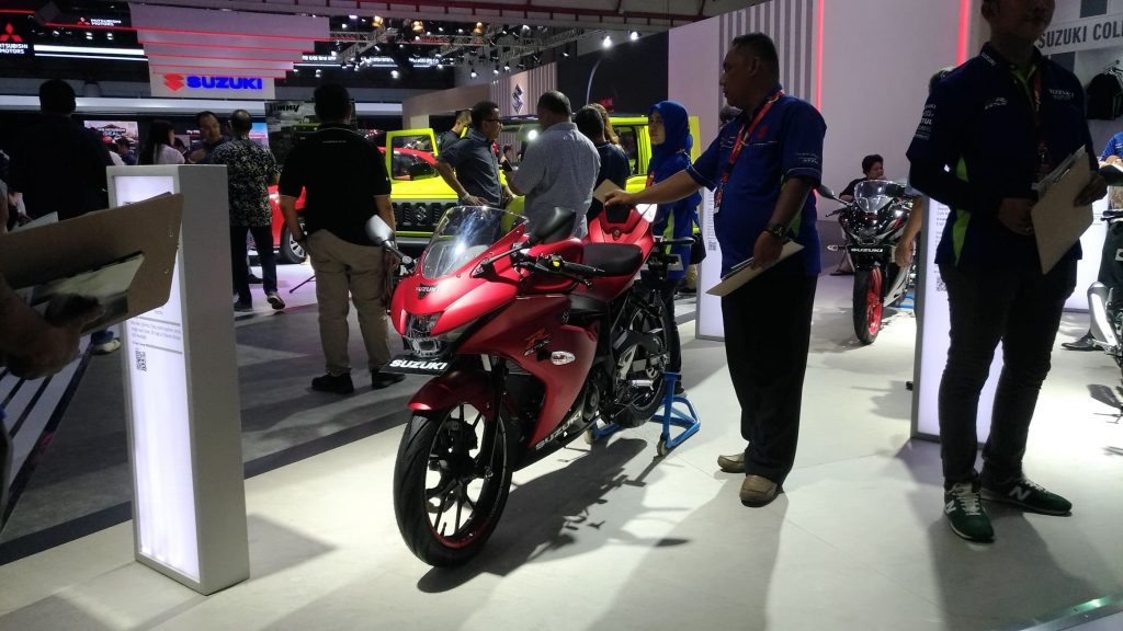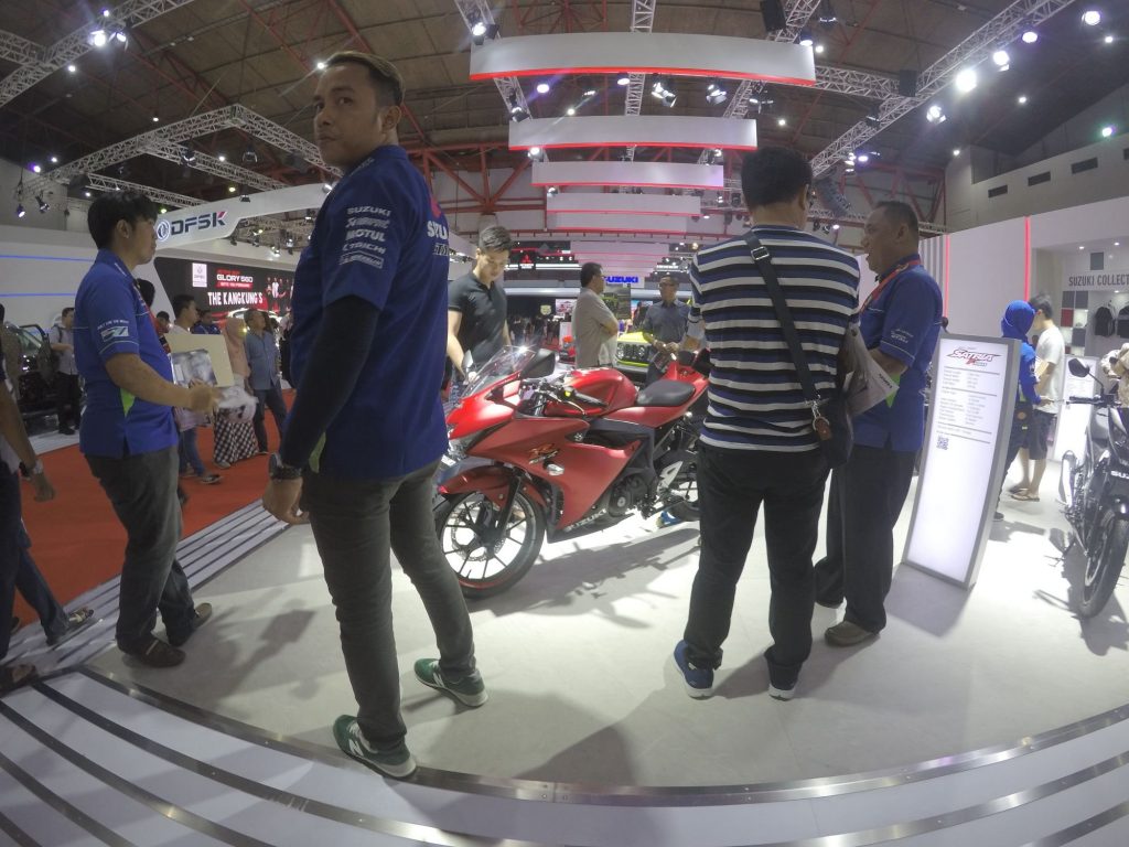 Bersanding dengan mobil-mobil Suzuki, SIS memajang sepeda motor Suzuki GSX-R150 Mat Red Edition, GSX-R150 ABS, All New Satria F150 danNEX II Elegant Premium yang saat ini merupakan tipe-tipe yang paling dicari oleh publik di Tanah Air.
