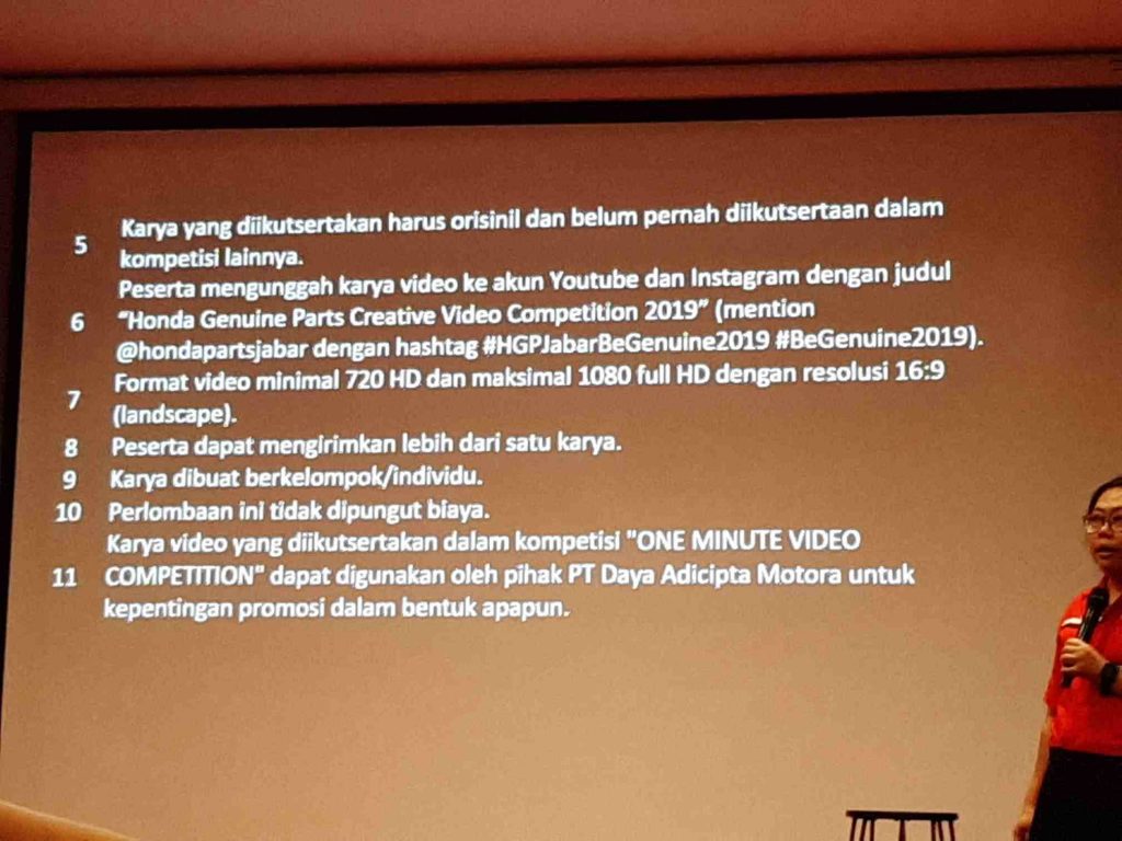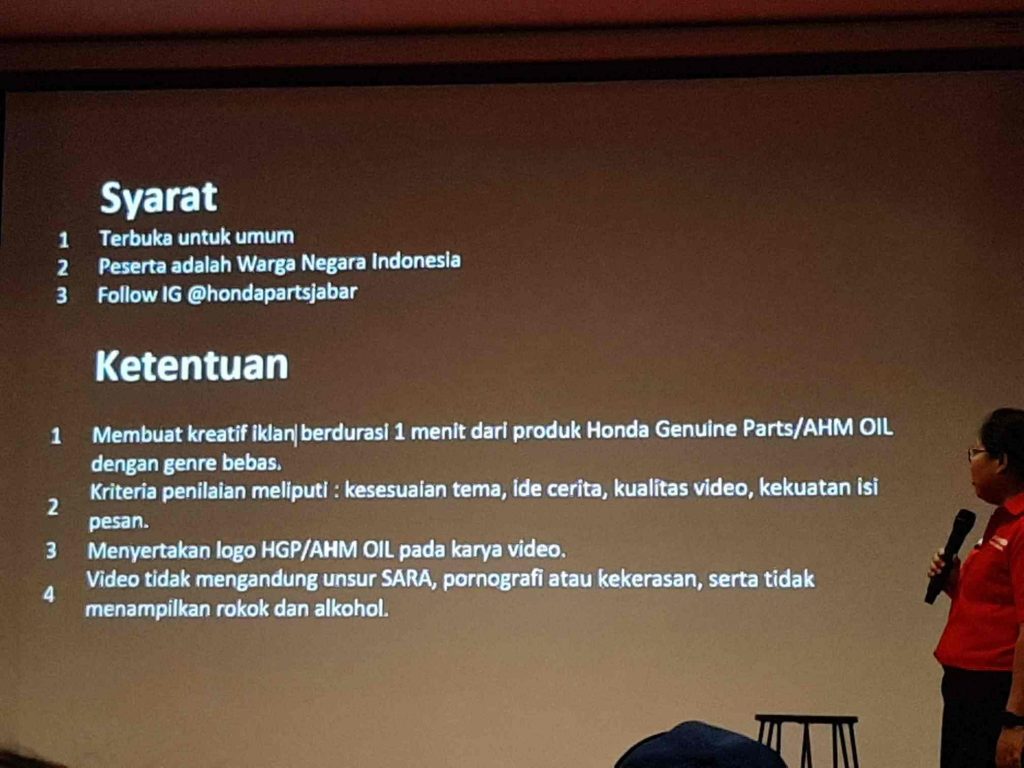 Untuk memfasilitasi hal tersebut, Main Dealer Honda Wilayah Jawa Barat dan Bandung, PT. Daya Adicipta Motora beserta Honda Parts Jabar melakukan workshop Video Creative Vol. 3 nih bro. Workshop yang sangat berguna ini telah dilaksanakan sebanyak 2 kali sejak tahun 2017 lalu. Nah, saat ini diadakan volume ke-3 untuk menyambut animo masyarakat yang sangat baik.