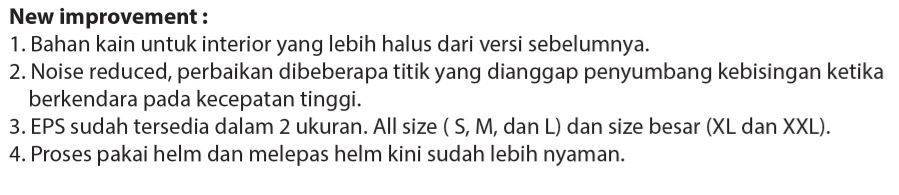 Lalu, kini NJS ZX-1 juga sudah diberikan bahan kain yang lebih halus, dengan perpaduan kulit sintetis dan bahan fabric. Nyaman nih! Selain itu, kini NJS ZX-1 juga sudha tersedia dalam 2 ukuran outer shell (EPS)!! Ini yang di awal perilisan sempat jadi perbincangan, karena yang beli ukuran S, shellnya sama dengan yang XXL 😀 . Kini ga usah khawatir lagi ya, shellnya udah beda ukuran koK! Jadi ga bakal berasa bagol lagi deh kalo pake NJS ZX-1 untuk yang berbadan kecil…