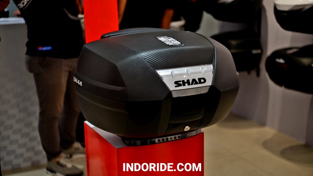 Sebagai bikers yang sehari harinya menggunakan box, cukup ngiler sama produk SHAD yg satu ini nih bro. SH44 adalah Top Case yang Kokoh & Modern serta cocok untuk ADVENTURE RIDING yang dibuat dengan material polypropylene yang berkualitas tinggi dan telah diperkuat. Tutup box nya dibuat dengan gaya karbon yang mencerminkan kualitas yang diminta oleh pemilik sepeda motor kelas atas. Issue yang sebelumnya sempat hadir, yakni berisik saat d jalan rusak, saat ini sudah disempurnakan di SH44, dengan ditambahkannya seal karet di box ini. Sedangkan kapasitasnya mampu untuk menampung 2 helm. Passs!!