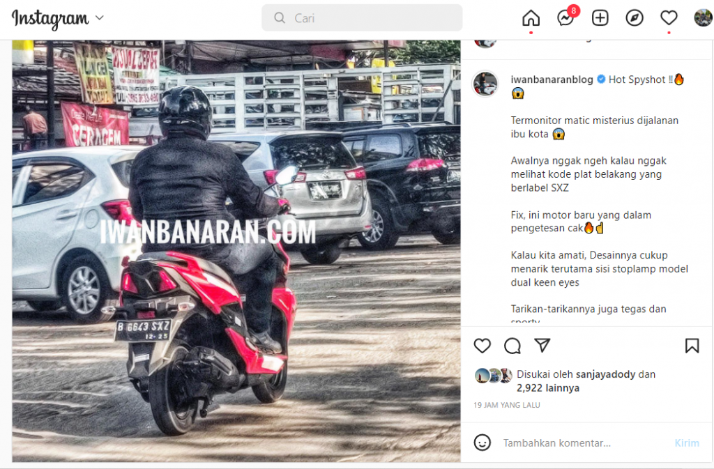 Ingat gak Bro, beberapa waktu lalu, IndoRide sempat mendapatkan Spyshot skutik misterius yang sedang ditest menggunakan sticker kamuflase? Nah, setelah melakukan cross-check mendalam, makin kuat sinyalnya nih kalau skutik misterius tersebut adalah Suzuki Avenis 125. Yep, sinyal tersebut makin kuat ketika Cak Iwan Banaran memposting skutik dengan desain yang mirip, di feeds instagramnya!